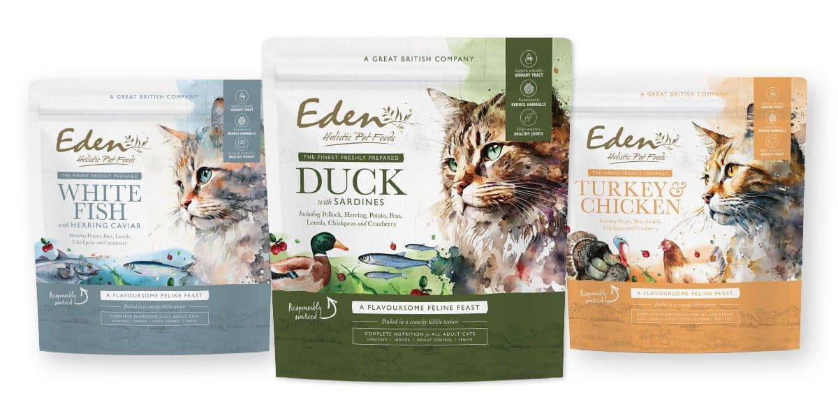 Eden's latest range of premium foods guaranteed to tempt the most demanding of felines! Containing 70% meat, they are designed to be extremely palatable.